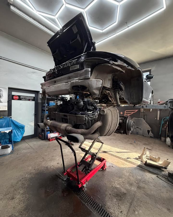 Pamiętacie go?? 🥹 Nasz podopieczny już się spieszy tam gdzie jego miejsce! W zeszłym tygodniu przeprowadziliśmy dogłębną rewizję po dotarciu silnika tego monstrum- wszystko wygląda obiecująco! 🔥 Mechanicznie mamy już prawie wszystko- silnik, skrzynia, napęd jest już przygotowany, prawie- czekamy jeszcze na nowy, mocniejszy wał napędowy- niestety fabryczny nie będzie w stanie przetłumaczyć nawierzchni co